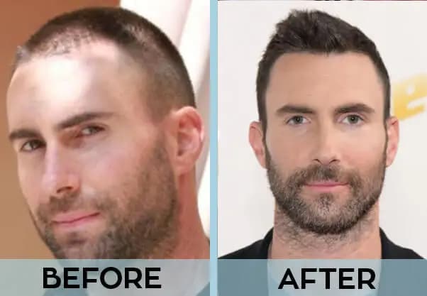 The discussion around an Adam Levine hair transplant is based mainly on before and after photo comparisons that show improved density and a more defined hairline over time.