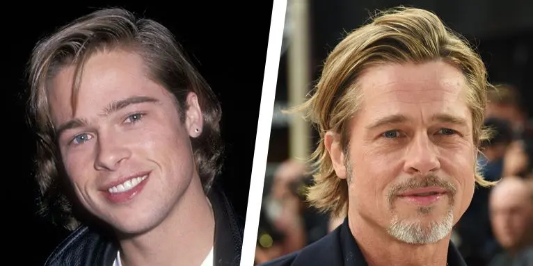 Photos of Brad Pitt young show a strong and thick hairline. His hair sat slightly lower in his twenties, which is normal. Over time, most men develop a mature hairline that moves back about 1 to 2 centimeters.
