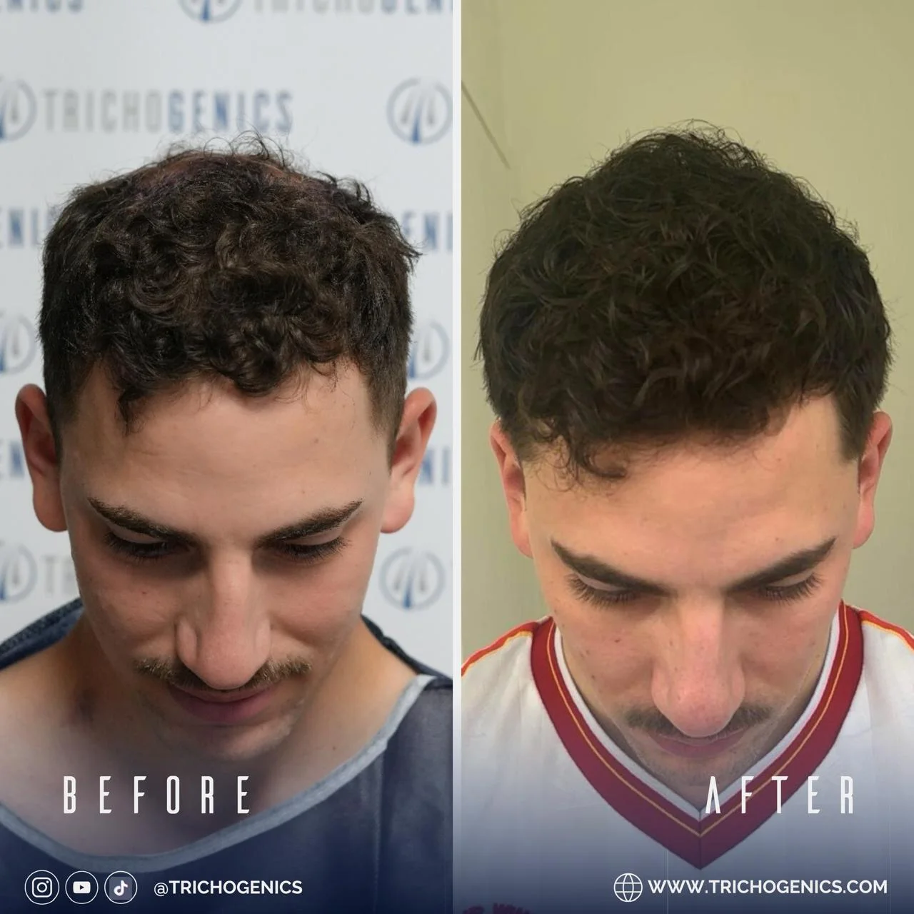 Before and after photos show a gradual change. Hair often sheds first, then regrows. New growth usually starts after three to four months. By 12 months, most patients see the final density and texture.
