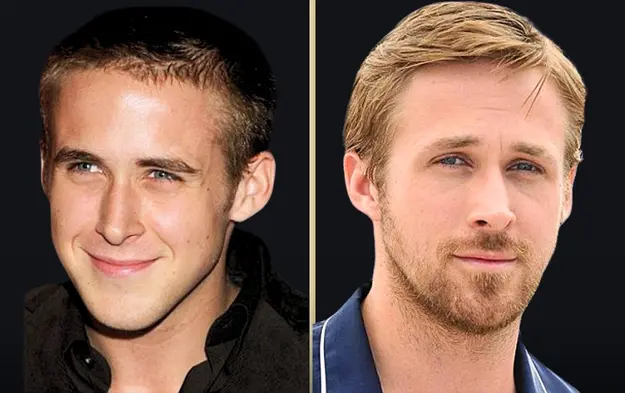 This question often appears because older photos show a slightly higher hairline. Did Ryan Gosling have a hair transplant is asked when fans compare early roles with current films.